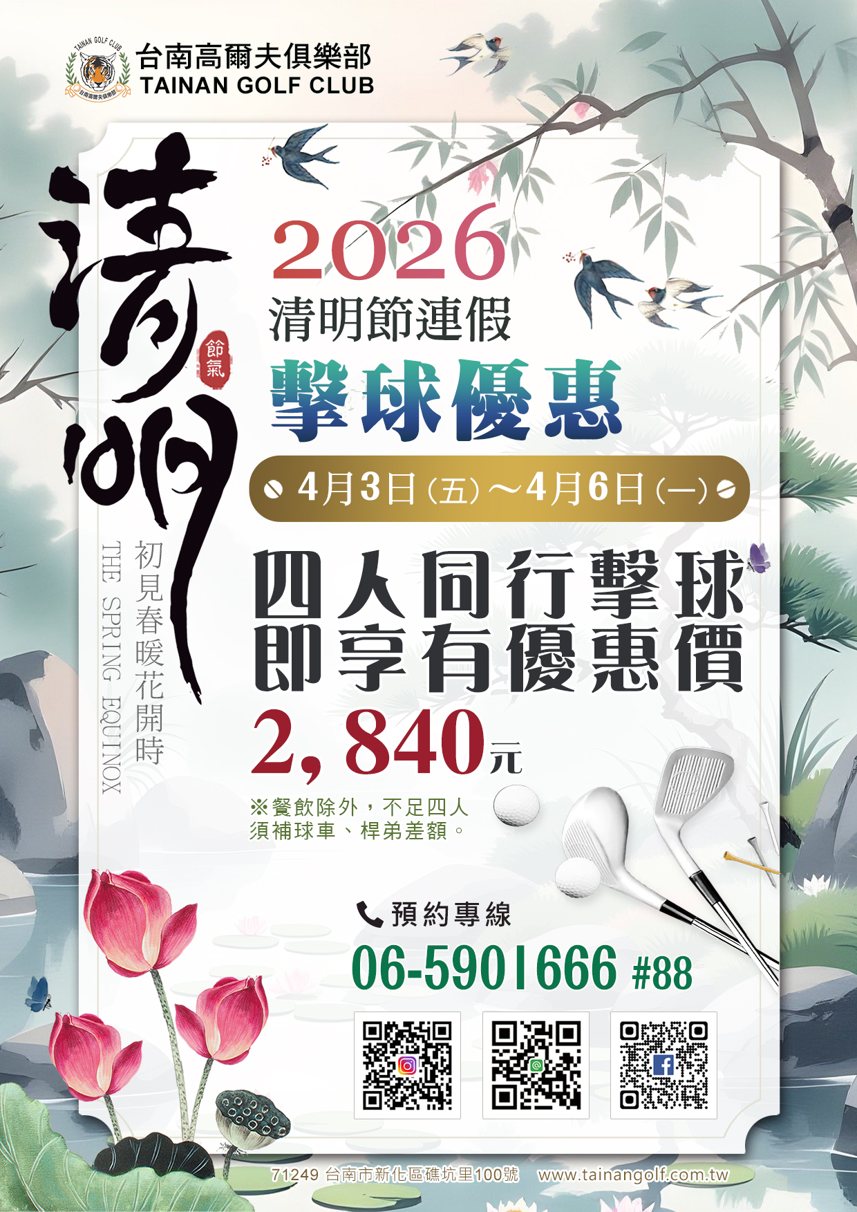 四人同行擊球,即享有優惠價2,840元