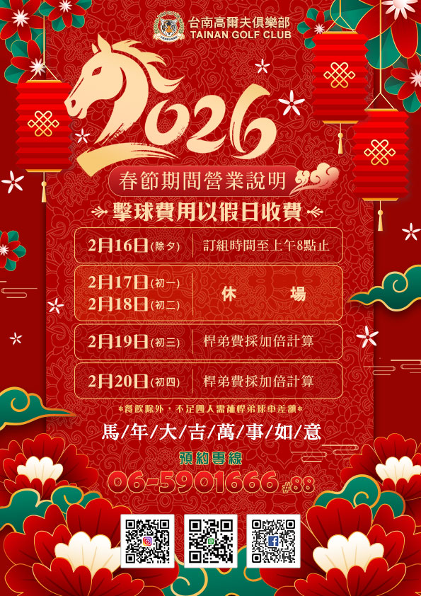 2月17日(初一)及2月18日(初二) 休場(無營業)